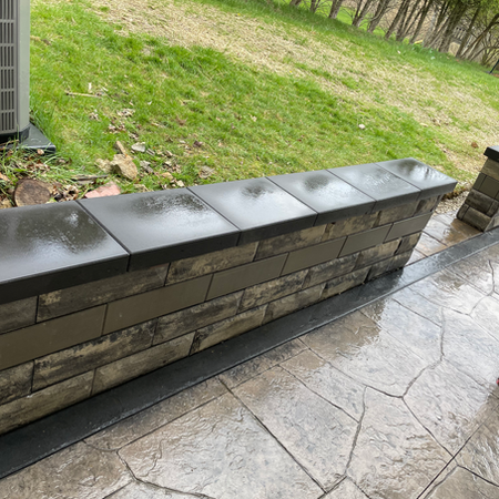 This project was a beautiful addition to the house. We built 4 retaining walls with 2 pillars and lights on all the walls using Unilock's Ucara system with pitched granite fusion and smooth opal as an accent strip.